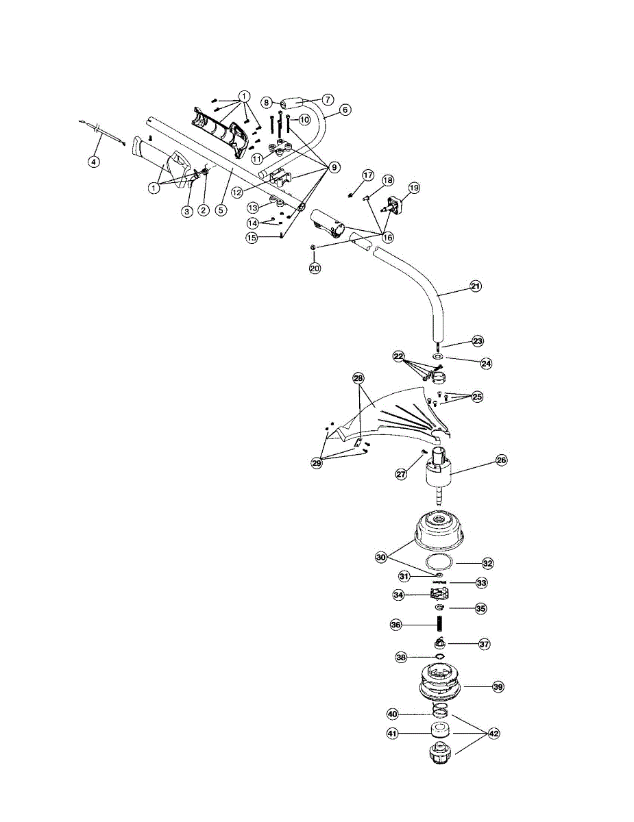 Upper housing assembly with flexible shaft for gas line trimmers. Installs between power head and lower boom. Replace if housing is cracked or damaged.