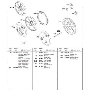 Parts for Briggs & Stratton 326431-0193-99: Booster Fans, Rotating Screens Parts