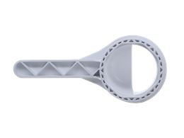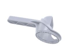 The Auxiliary Tool is an OEM part for Bosch dishwashers. This specialized tool is designed to assist with the removal and replacement of the metal nut found on the zeolite container or filter housing.