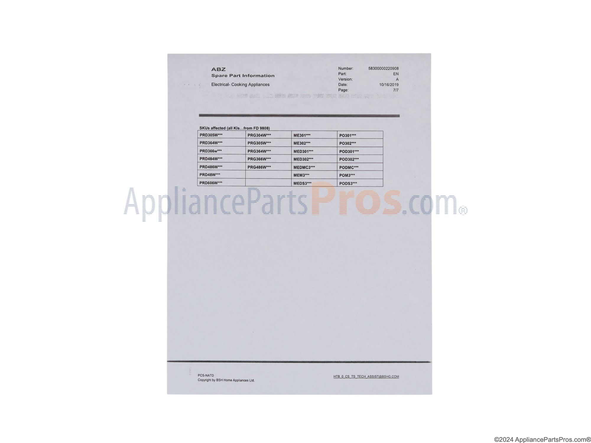 Genuine Bosch part. Bosch brands include Bosch, Thermador, Gaggenau, and others.