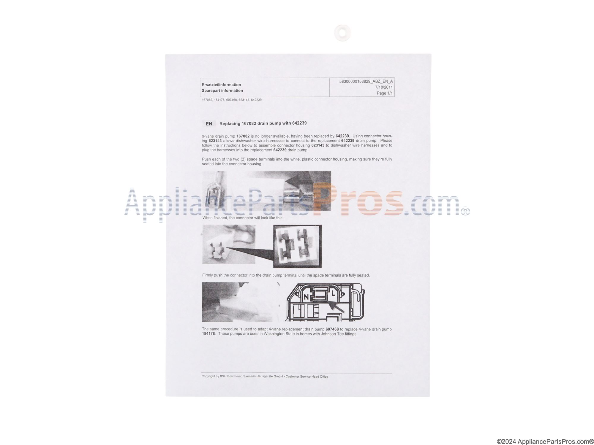 Craig W Scottsdale , AZ February 15, 2020 Appliance: Bosch Dishwasher SHX43R55UC/64 Dishwasher didn’t drain Realized on the weekend that the dishwasher didn’t’t drain after the wash cycle. Kitchen had a plastic smell on Sunday. After looking at the schematic figured it had to do with the drain pump unit. Went online with the make and model number and ordered the part Sunday night and it came in on Wednesday. Had the day off on Thursday and it literally took me less than an hour from gettin the tool bag out to cleaning up the towels protesting the floor. The online videos are a must to show you the process. I reviewed one a second time when I had a bit of trouble popping the front panel off and it took care of the issue. This is the second time I’ve done an appliance project with Appliance Parts Pro’s help and they’ve delivered the parts that work and provided the online help when needed. It was greatly appreciated, 5 stars! Ps. A chip from a dish had jammed inside the impeller and fried the original unit. Read More... 4 People found this story helpful Do-It-Yourself Rating: Repair Time Estimate: 30-60 minutes Tools: Nut Drivers, Screwdrivers