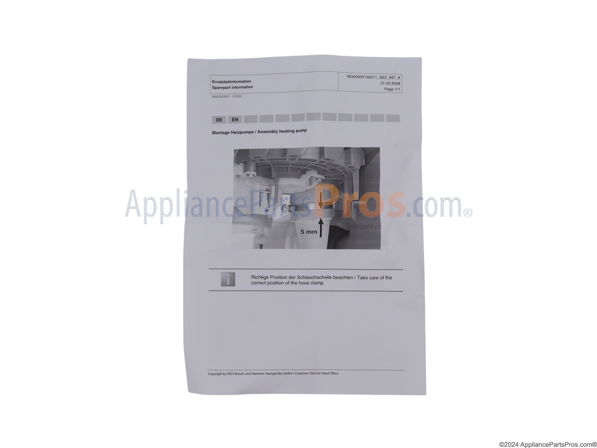 Bosch 12011015 Heat Pump OEM Part