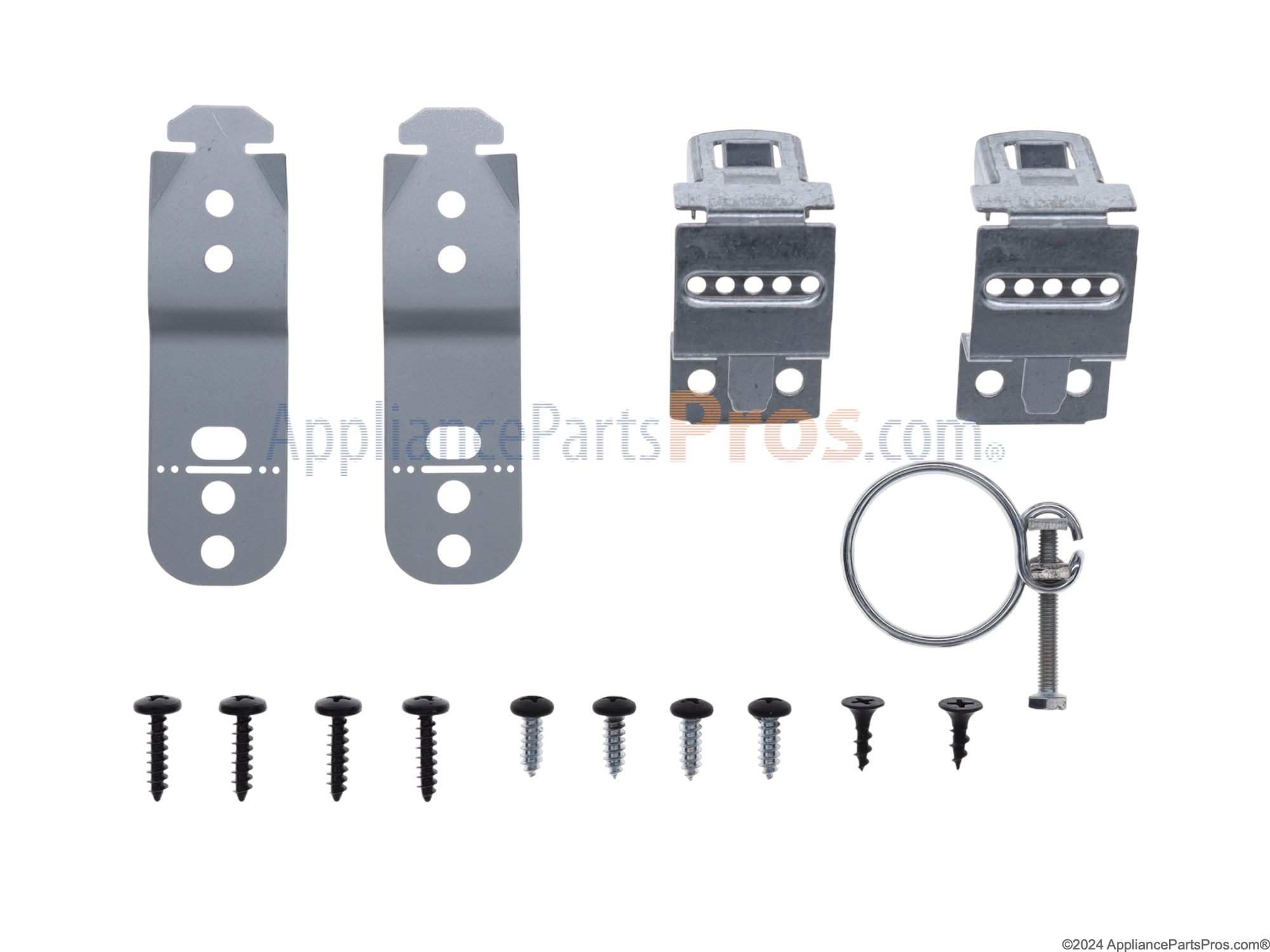 The Dishwasher Installation Set is an OEM part for Bosch dishwashers. This set contains all necessary hardware for professional installation or replacement, including leveling legs, mounting brackets and anti-tip brackets. Manufactured from corrosion-resistant steel, these parts securely fasten the dishwasher into place.