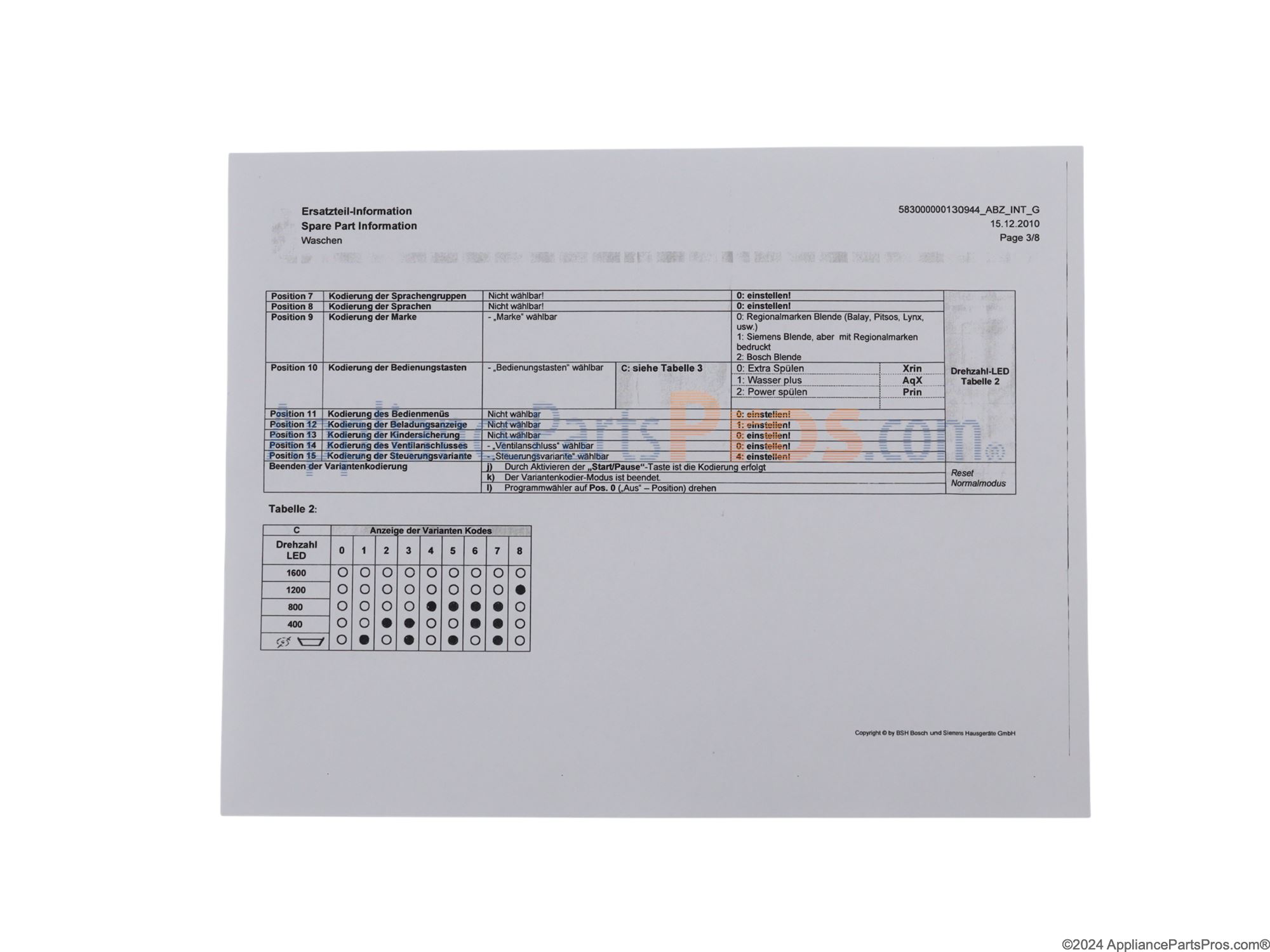 Genuine Bosch part. Bosch brands include Bosch, Thermador, Gaggenau, and others.