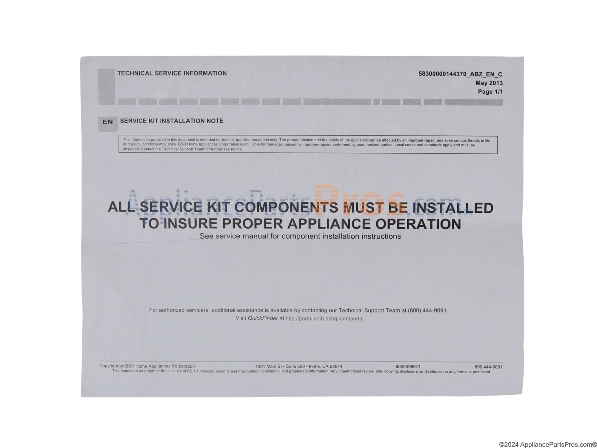 Genuine Bosch part. Bosch brands include Bosch, Thermador, Gaggenau, and others.