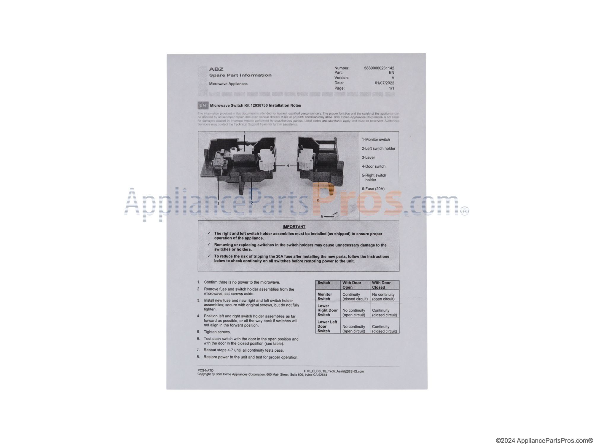 Paul O Bridgewater , MA August 23, 2022 Appliance: Model BOSCH MICROWAVE My microwave would not heat food. Changed out the door Micro Switch that shorted out. Read More... Do-It-Yourself Rating: Repair Time Estimate: 15-30 minutes Tools: Screwdrivers