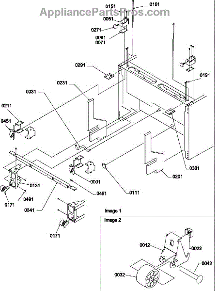 Parts for Amana BBI20TPW-P1199102WW: Bottom Hinge And Roller Assembly Parts