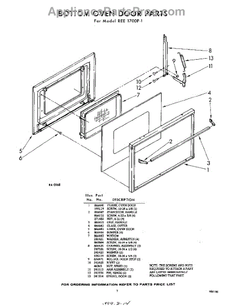 Parts for Whirlpool REE1700P1: 07 - Bottom Oven Door Parts