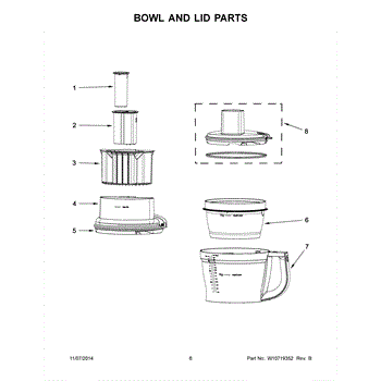 Replacement work bowl for food processors. Molded container that holds ingredients during processing. Replace if cracked, chipped, or worn.