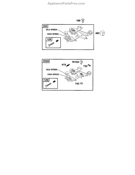 Parts for Briggs & Stratton 185400 TO 185499 (0412-0599): Bracket Control Parts