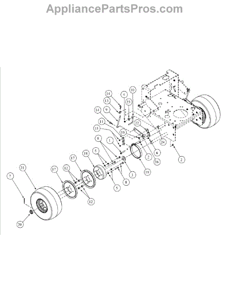 Complete wheel assembly with tire for gas walk-behind and wide area mowers. Replaces cracked, broken, or worn wheel assemblies. Includes tire mounted on rim.