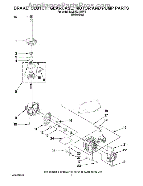 Fix a washer that won't spin or agitate with grinding noises. This transmission gearcase assembly transfers motor power to drive the wash basket.