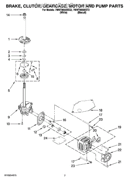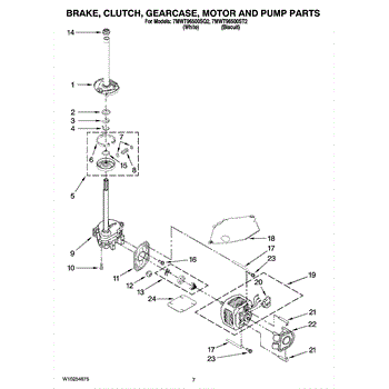 Parts for Whirlpool 7MWT96500SQ2: 04 - Brake, Clutch, Gearcase, Motor And Pump Parts