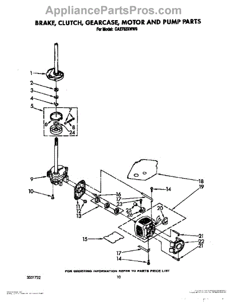 Parts for Whirlpool CA2762XWW0: 08 - Brake, Clutch, Gearcase, Motor And Pump Parts