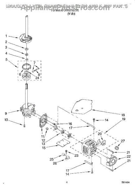 Parts for Whirlpool CAW2762EW0: 03 - Brake, Clutch, Gearcase, Motor And Parts