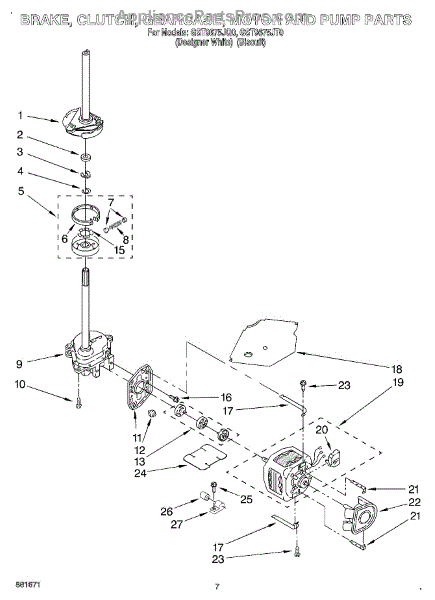 Parts for Whirlpool GST9675JT0: 04 - Brake, Clutch, Gearcase, Motor And Pump Parts