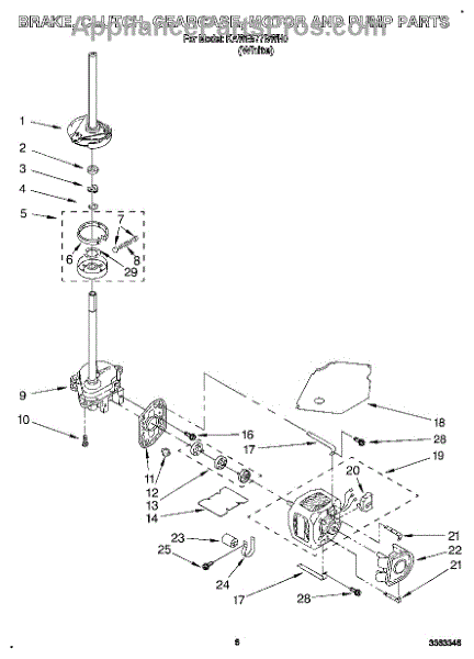 Two large ports with flapper valve. Fits most Whirlpool and Kenmore direct drive washers (no belt models). Related item: Motor coupling 285753A.