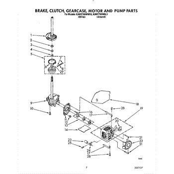 Clutch band and lining kit transfers motor power to the drum during spin cycle. Replace if washer spins slowly or won't spin. Verify fit by model number.
