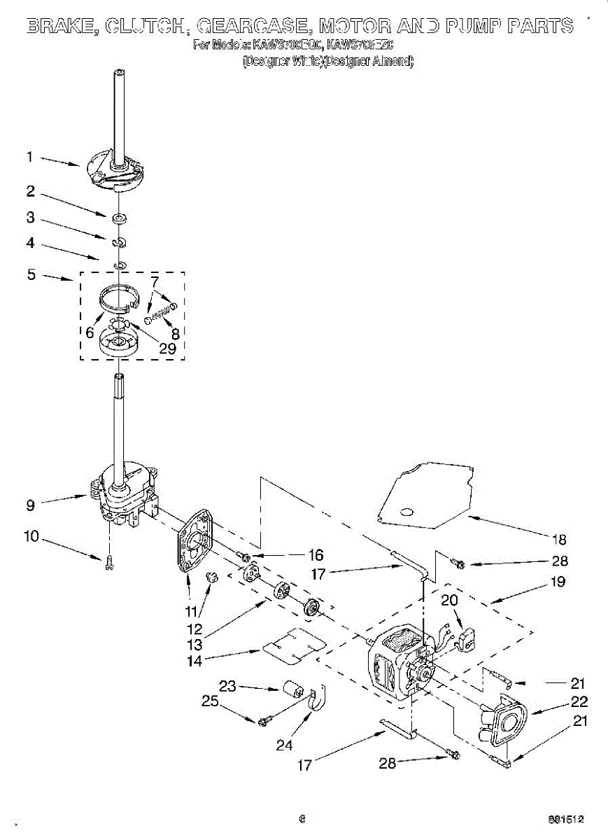 Parts for Kitchenaid KAWS700EZ0: 04 - Brake, Clutch, Gearcase, Motor And Pump Parts