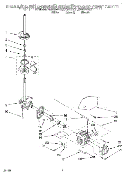 Secures the drain pump to the motor in direct drive washers. Replace if cracked, broken, bent, or missing to properly mount the pump and prevent misalignment.