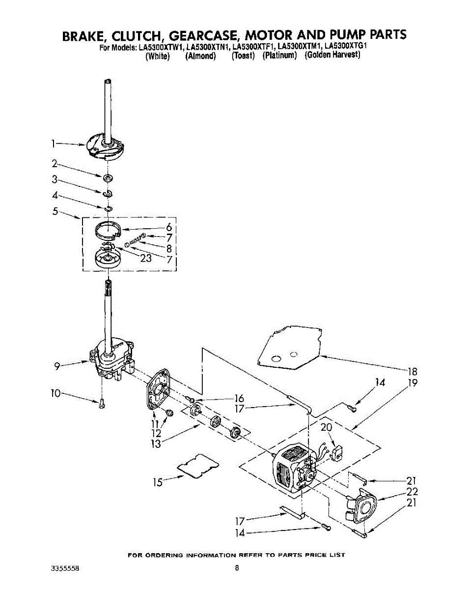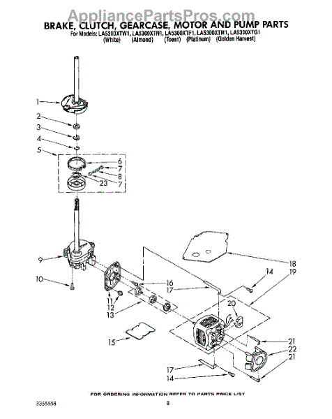 Parts for Whirlpool LA5300XTF1: 07 - Brake, Clutch, Gearcase, Motor And Pump Parts