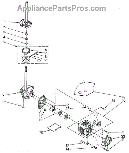 Parts for Whirlpool LA5300XTM0: Brake, Clutch, Gearcase, Motor And Pump Parts