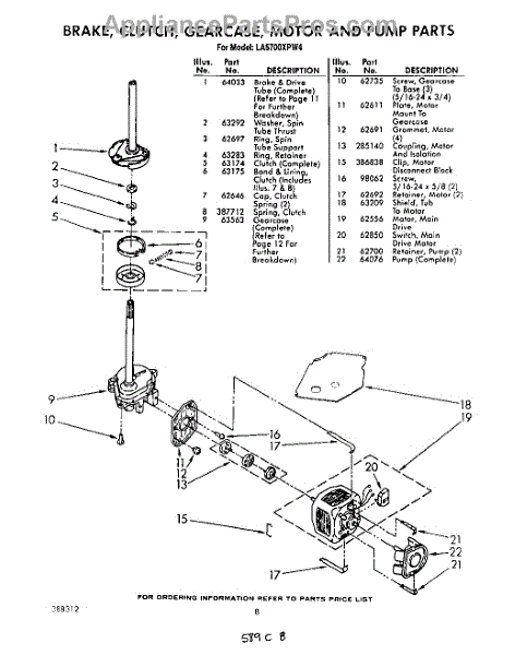 Parts for Whirlpool LA5700XPW4: 06 - Brake, Clutch, Gearcase, Motor And Pump Parts