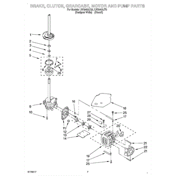 Secures the drain pump to the motor in direct drive washers. Replace if cracked, broken, bent, or missing to properly mount the pump and prevent misalignment.