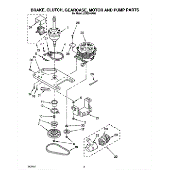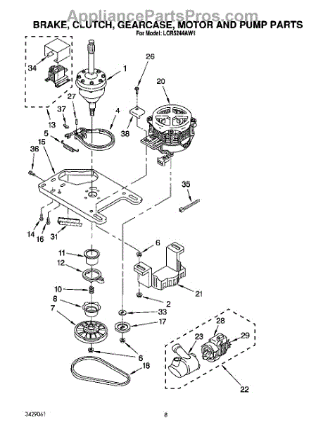 Parts for Whirlpool LCR5244AN1: 06 - Brake, Clutch, Gearcase, Motor And Pump Parts