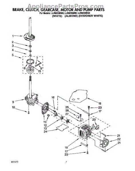 Parts for Whirlpool LLR8233BN0: 05 - Brake, Clutch, Gearcase, Motor & Pump Parts