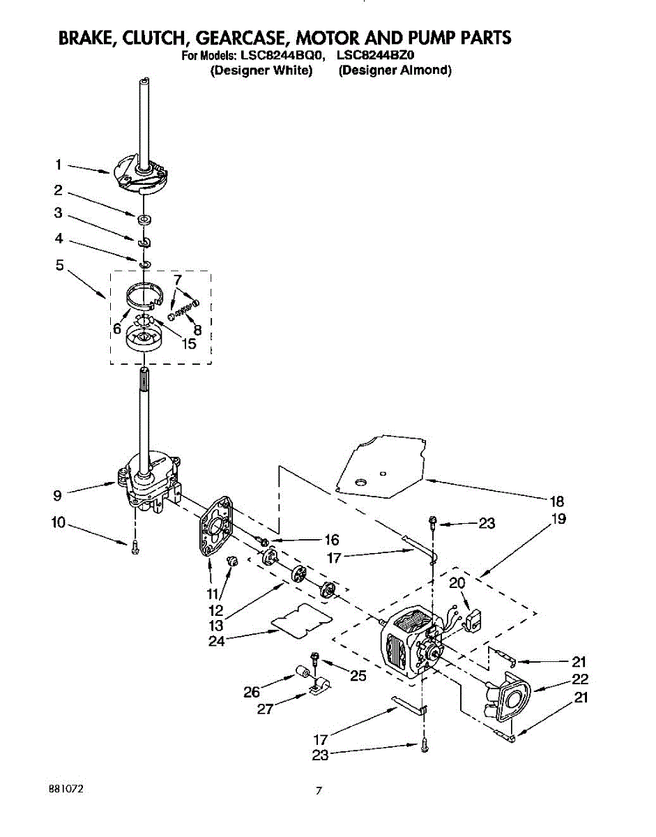 Parts for Whirlpool LSC8244BZ0: 05 - Brake, Clutch, Gearcase, Motor & Pump Parts