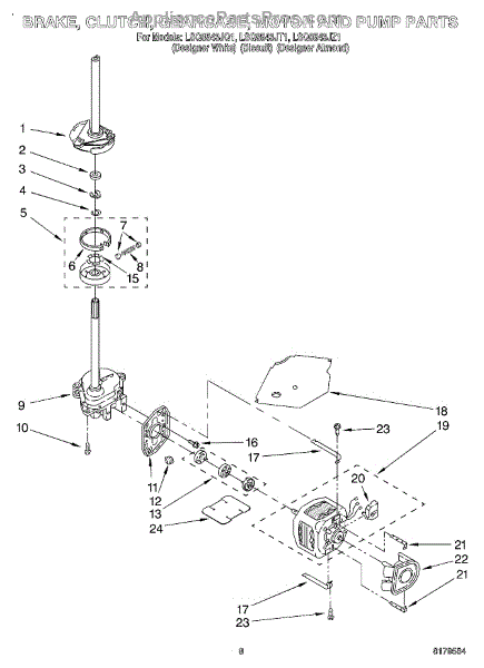 Clutch band and lining kit transfers motor power to the drum during spin cycle. Replace if washer spins slowly or won't spin. Verify fit by model number.