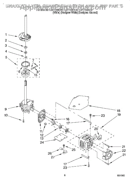 Parts for Whirlpool LSR7233EW0: 05 - Brake, Clutch, Gearcase, Motor & Pump Parts