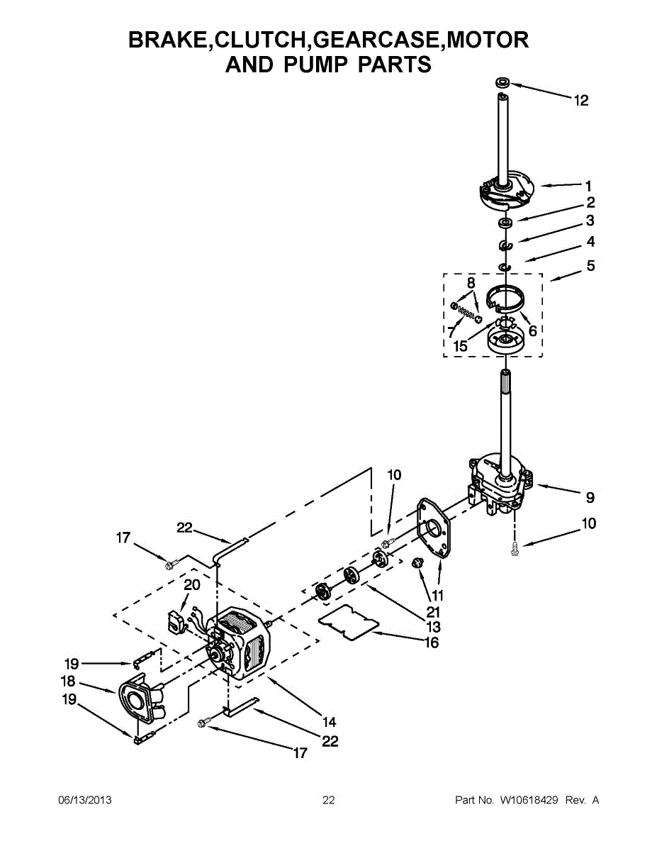 Secures the drain pump to the motor in direct drive washers. Replace if cracked, broken, bent, or missing to properly mount the pump and prevent misalignment.