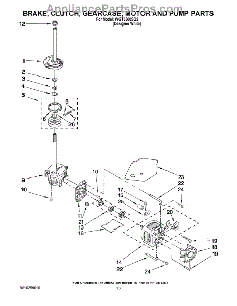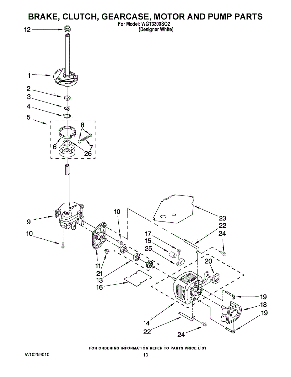 Parts for Whirlpool WGT3300SQ2: 08 - Brake, Clutch, Gearcase, Motor And Pump Parts