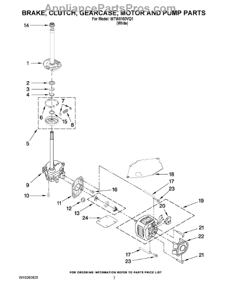 Parts for Whirlpool WTW5100VQ1: 04 - Brake, Clutch, Gearcase, Motor And Pump Parts