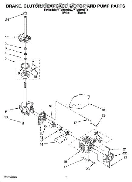 Parts for Whirlpool WTW5500SQ2: 04 - Brake, Clutch, Gearcase, Motor And Pump Parts