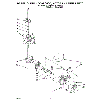 Parts for Whirlpool WTW5850SG0: 04 - Brake, Clutch, Gearcase, Motor And Pump Parts