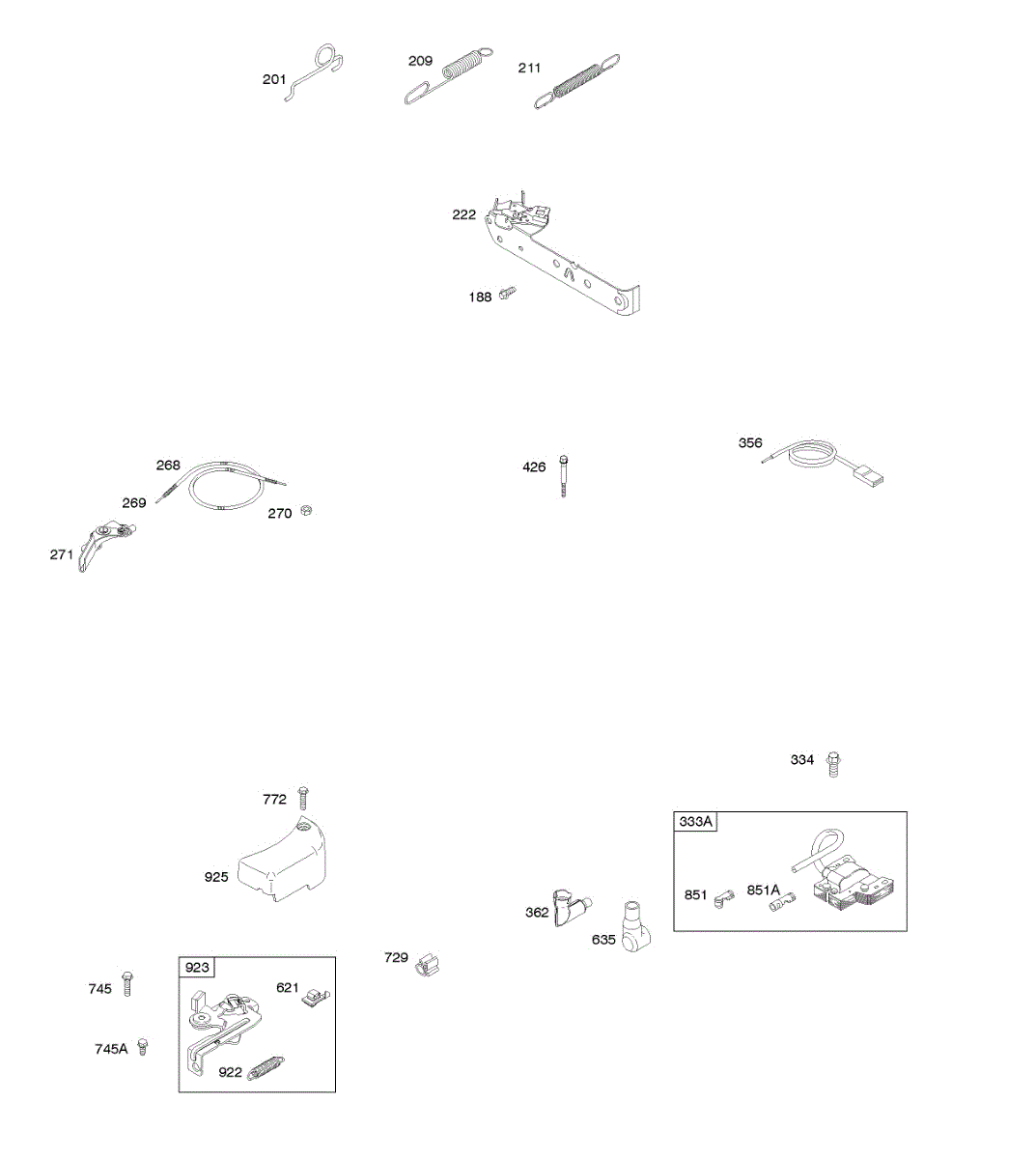 Parts for Briggs & Stratton 09S502-1019-B1: Brake, Controls, Governor Spring, Ignition Parts