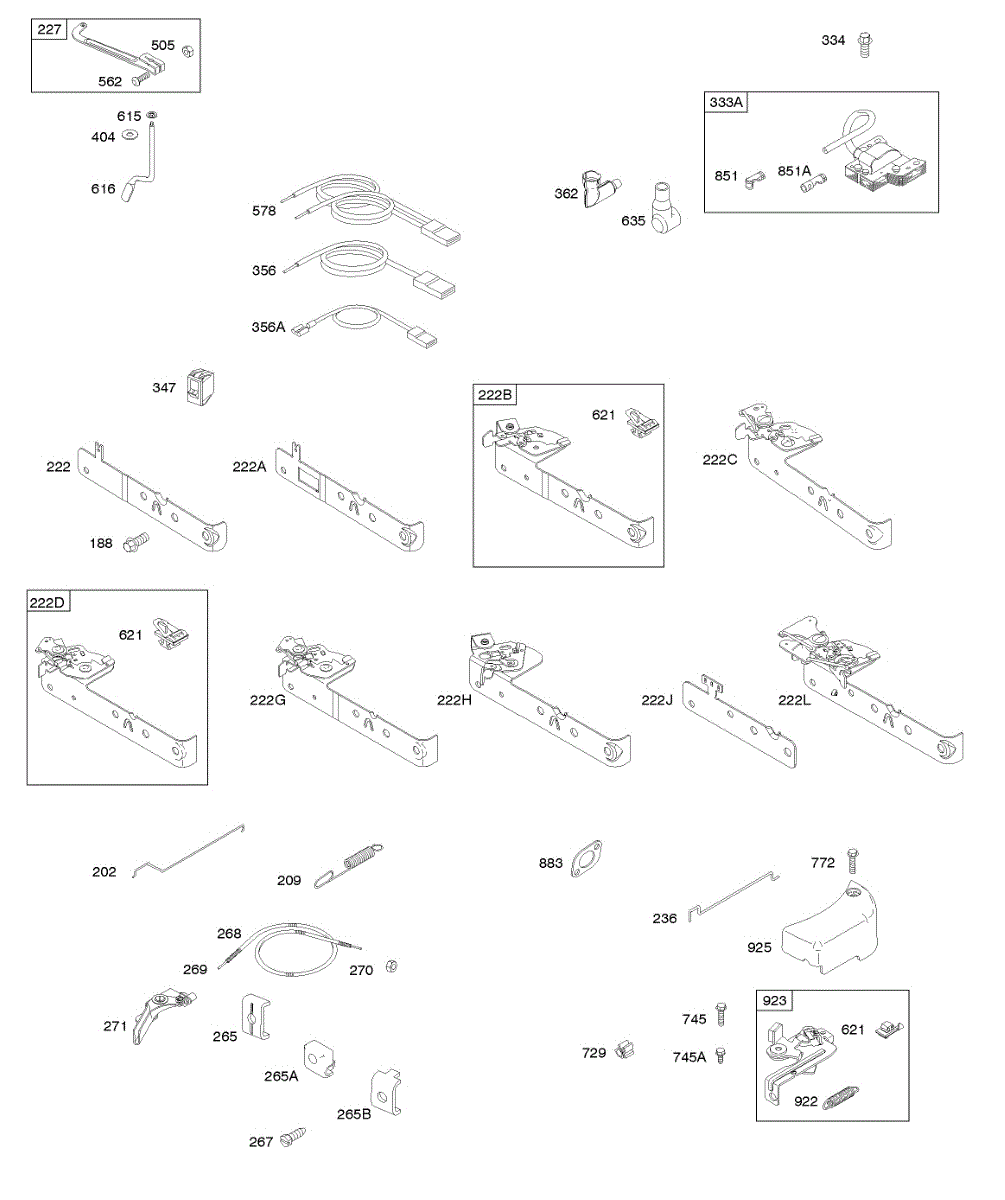 Parts for Briggs & Stratton 10T602-0137-H1: Brake, Controls, Governor Spring, Ignition Parts