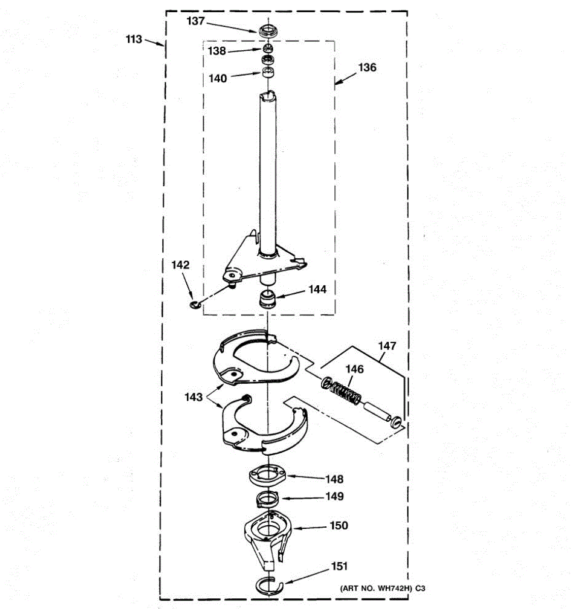 Parts for Ge WSM2420TCAWW: 03 - Brake & Drive Assembly Parts