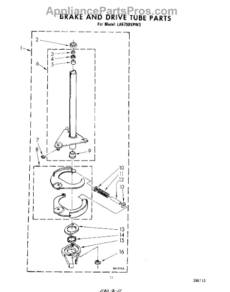 Parts for Whirlpool LA5700XPW3: 09 - Brake And Drive Parts