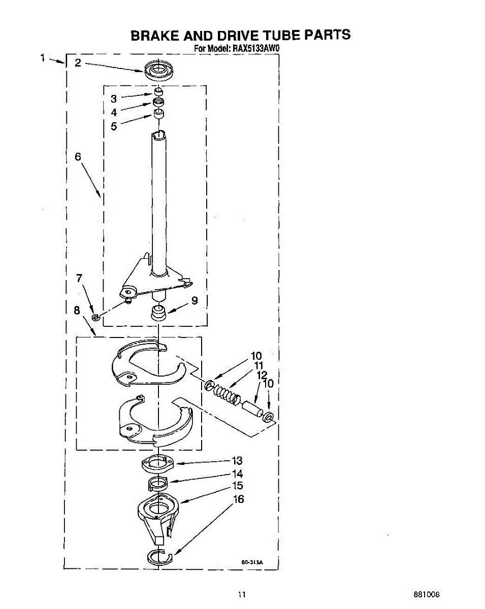 Parts for Roper RAX5133AW0: 10 - Brake And Drive Tube Parts