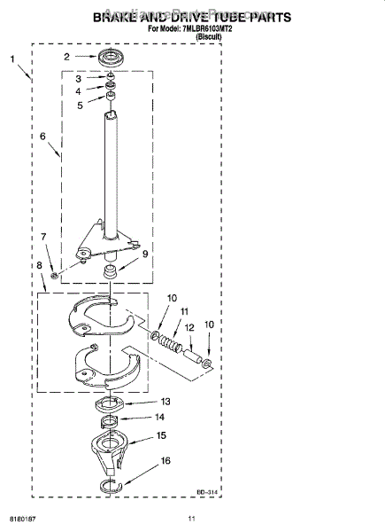 Parts for Whirlpool 7MLBR6103MT2: 07 - Brake And Drive Tube Parts