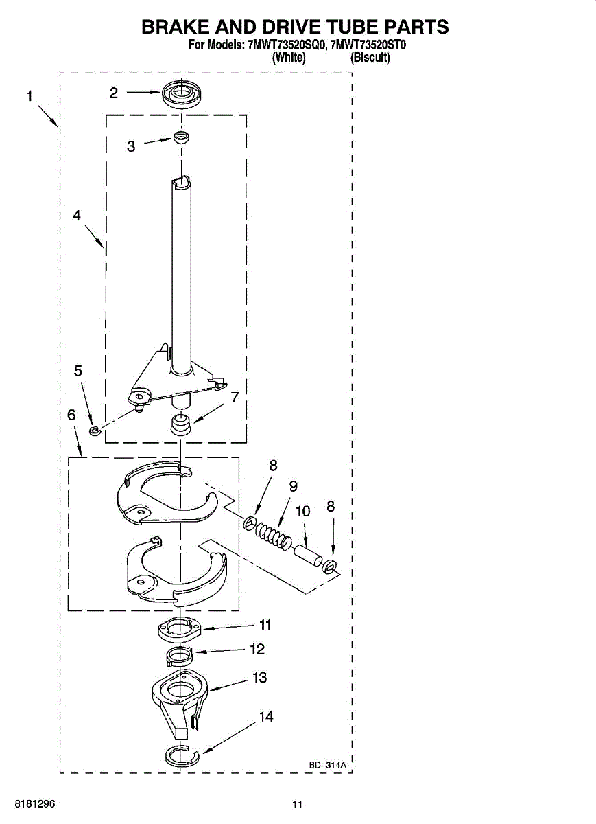 Parts for Whirlpool 7MWT73520ST0: 07 - Brake And Drive Tube Parts