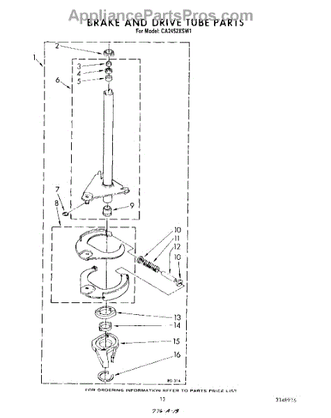 Parts for Whirlpool CA2452XSW1: 11 - Brake And Drive Tube Parts