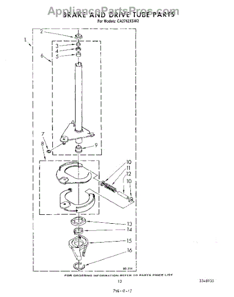 Parts for Whirlpool CA2762XSW2: 11 - Brake And Drive Tube Parts