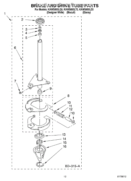 Parts for Kitchenaid KAWS850LE0: 09 - Brake And Drive Tube Parts