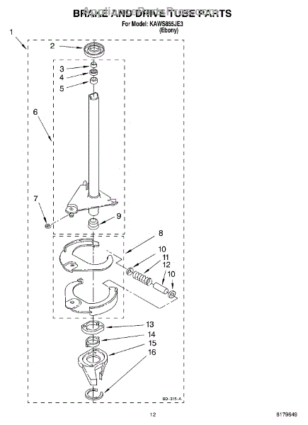 Parts for Kitchenaid KAWS855JE3: 09 - Brake And Drive Tube Parts