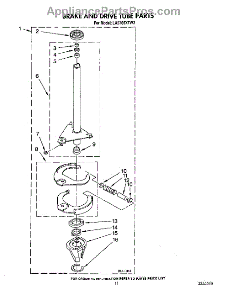 Parts for Whirlpool LA5705XTM2: 10 - Brake And Drive Tube Parts